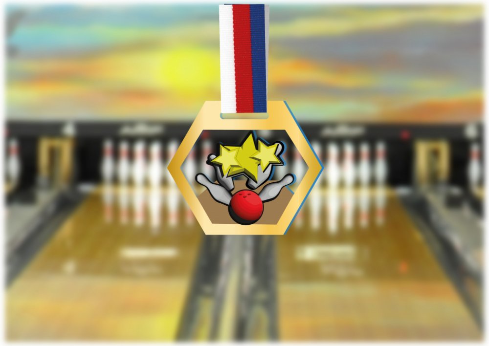 Pokud hledáte opravdu originální a hravě navrženou cenu pro mistry v bowlingu, pak vám dozajista padne do oka šestiúhelníková akrylátová medaile. Ta zobrazuje kreslenou verzi kuželek, bowlingové koule a hvězd evokující plný počet dosažených bodů. Akrylátová medaile se pro svůj originální design, který je počinem našich designérů, stane oblíbencem každého srdcaře, který miluje bowlingová utkání.