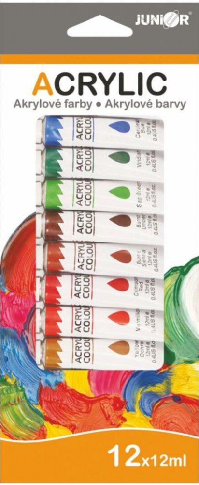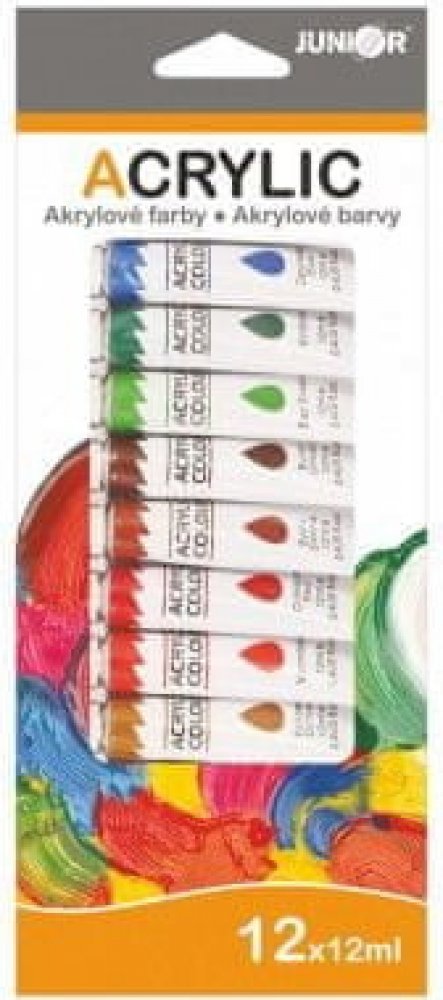 Akrylové barvy 12ml 12ks i na keramiku,sklo,kameny v krabičce 11x26cm