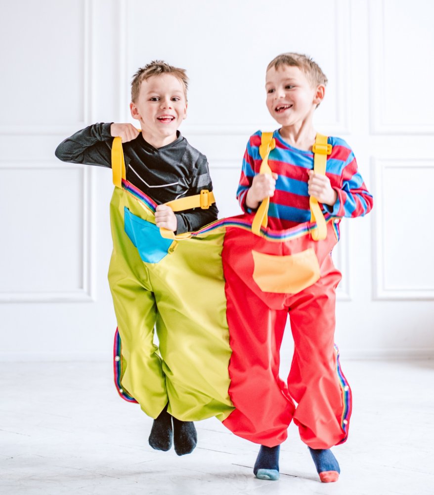 Délka od pasu po konec nohavice je 105 cm a šířka pasu jednotlivých kalhot je 70 cm. Společné běhání a skákání v těchto kalhotách pomáhá rozvíjet motorickou koordinaci, učí spolupráci, procvičuje schopnost komunikace a vzájemného porozumění.