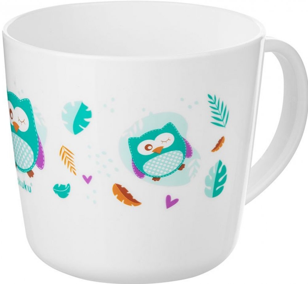 Akuku - Akuku Hrníček s ouškem Sovička - 12 m+, bílý s potiskem - Velmi lehký hrníček zdobený Slůnětem. Vyrobeno z bezpečných materiálů určených pro styk s potravinami.