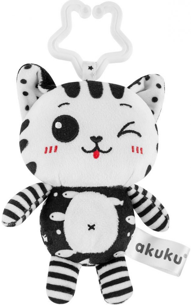 Akuku s chrastítkem kočička černobílá