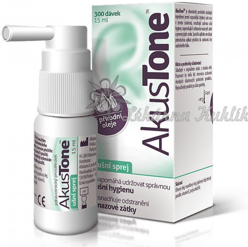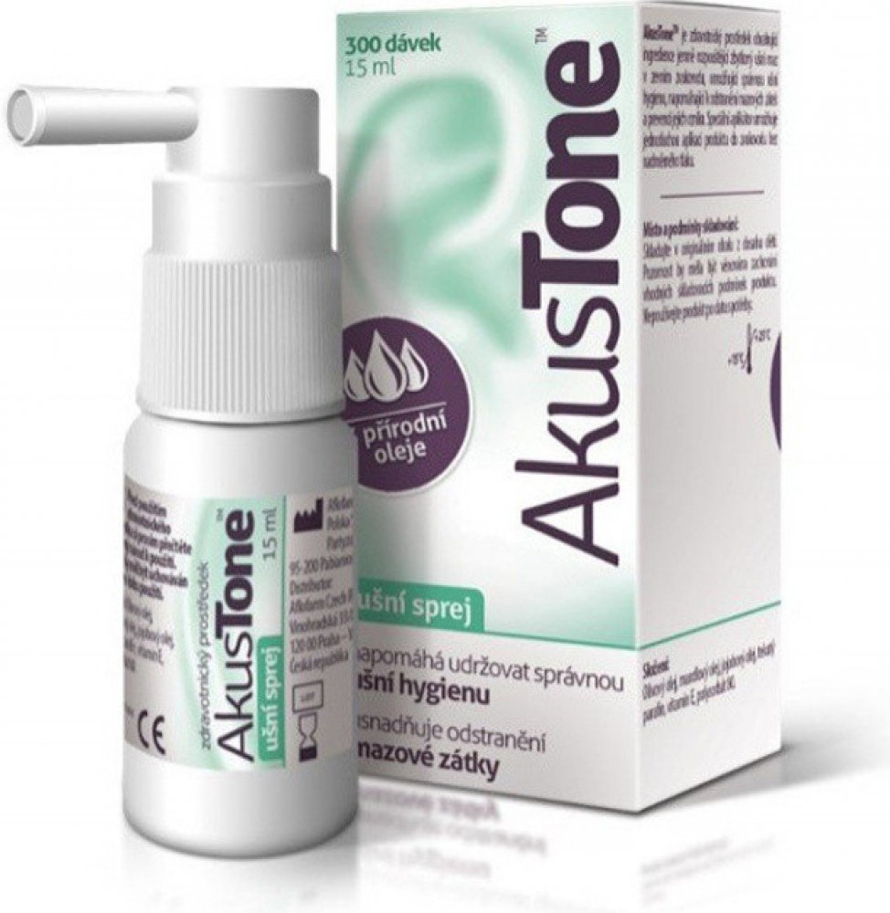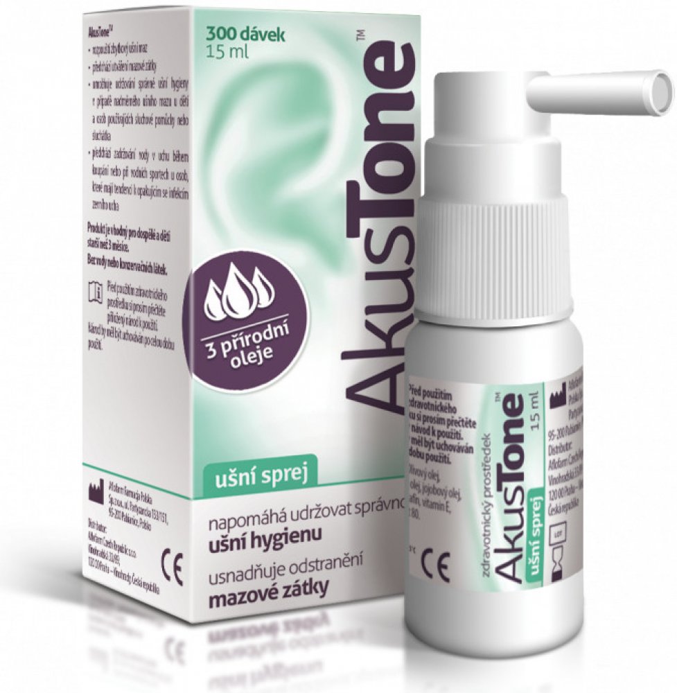 AkusTone je zdravotnický prostředek obsahující ingredience, které jemně rozpouští zbytkový ušní maz v zevním zvukovodu, umožňující správnou ušní hygienu. Díky svému účinku, AkusTone pomáhá odstranění mazové zátky a prevenci jejich vzniku.