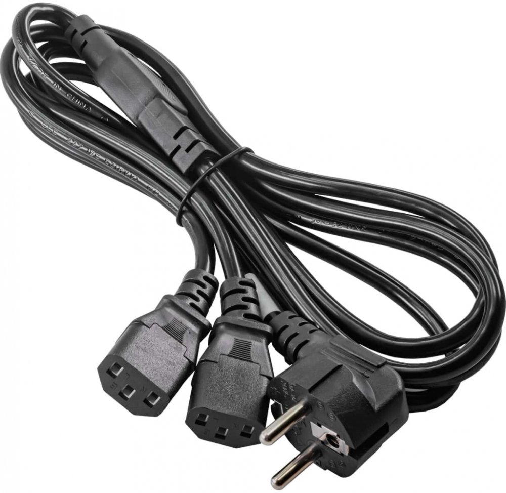 Vysoce kvalitní duální napájecí kabel Akyga® AK-PC-04A, navržený pro současné napájení dvou zdrojů ATX nebo ITX a také všech ostatních kompatibilních s konektorem IEC C13.