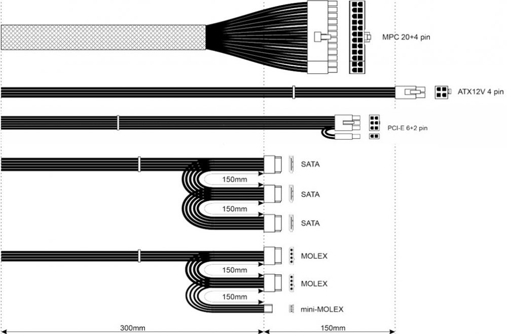 Výrobek sestává z vysoce kvalitních komponent. Napájecí zdroj má 3 konektory SATA, 2 konektory MOLEX, konektor mini-MOLEX, konektor PCI-E 6+2-pin, konektor P4 4-pin a 24-pinový univerzální konektor napájení základní desky. Podporuje specifikace ATX12V 2.0, takže může být použit s aktuální a novou generací počítačových platforem pro vícejádrové procesory. Efektivní tichý ventilátor s automatickou regulací otáček a průměrem 120 mm zajišťuje účinné chlazení. Napájecí zdroj má ruční spínač, který uživateli umožňuje bezpečně odpojit napájení bez nutnosti ručního odpojování kabelu od sítě. Vysoká účinnost přes 70% umožňuje efektivní napájení, stabilní provoz má pozitivní vliv na spolehlivost všech součástí počítače.