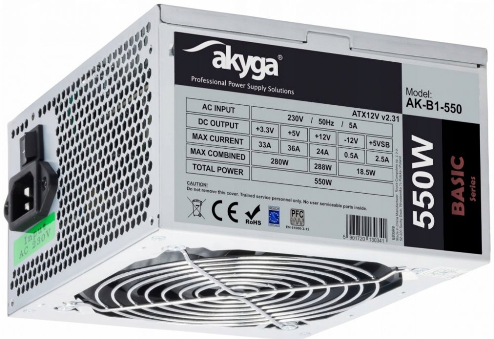 Zdroj řady Basic, model AK-B1-550, s výkonem 550W je velmi povedeným designem.