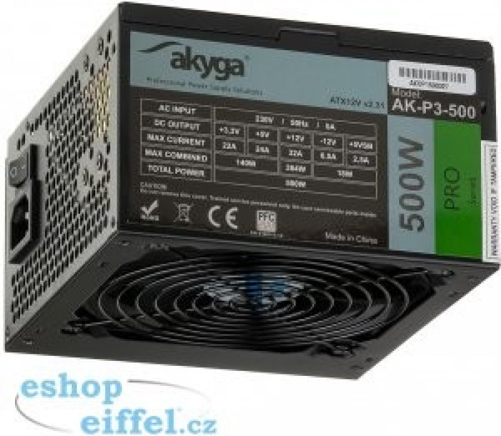 Moderní a technologicky vyspělý Akyga napájecí zdroj řady Pro 500W kompatibilní s ATX 2.31, určený pokročilým uživatelům pro stavbu PC.