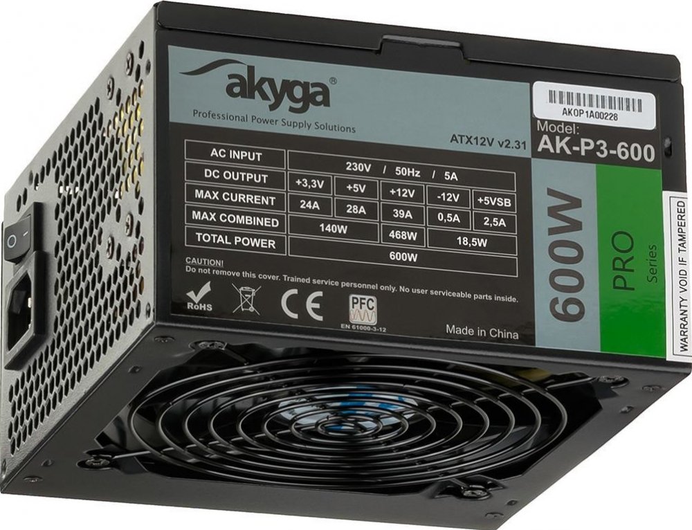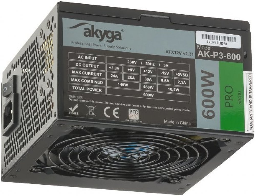 Moderní a technologicky vyspělý Akyga® napájecí zdroj Pro série 600W, kompatibilní s ATX 2.31, určený pro pokročilé uživatele.Díky vysokým parametrům bude napájení pracovat s většinou konfigurací. Jedná se o 5x konektory SATA, 2x konektory MOLEX, konektor mini-MOLEX, 2x konektor PCI-E 6+2 kolíky, EPS 4+4 kolíkové a univerzální 24-pin. Důležitou vlastností napájecího zdroje jsou kabely nadstandardní velikosti,
