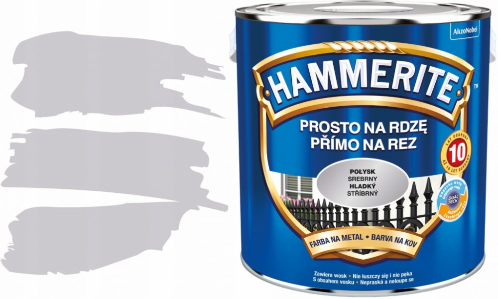 Hammerite Přímo na rez je jednosložková na vzduchu schnoucí antikorozní a dekorativní barva na železné kovy (ocel, železo, litina) pro použití v exteriéru i interiéru. Nátěr je speciálně vyvinutý přímo na zkorodovaný kov, zajišťuje jeho aktivní ochranu proti korozi až na 8 let. Díky nové technologii DUALTECH je zaručená vysoká vodoodpudivost nátěru. Nátěr vyniká krátk...