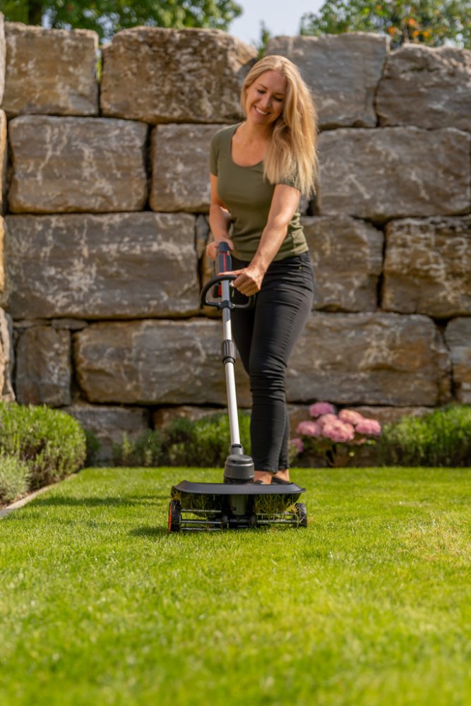 - Provzdušnuje a odstranuje trávníkovou plst a mech