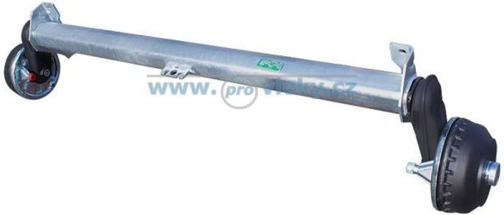 Brzděná náprava AL-KO Kober pro přívěsy. Pružení nápravy je konstruováno pomocí gumových torzních tyčí, pro optimální odpružení při zatížení přívěsy. K nápravě lze namontovat stabilizační tlumiče vč. držáků bez nutnosti sváření – jednoduchá montáž.
