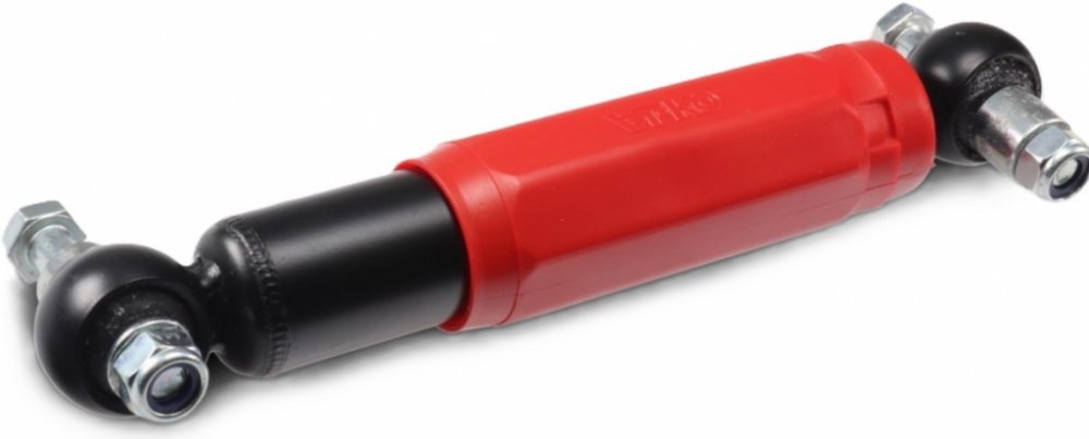 - Koncovka tlumiče je osazena kulovým silentblokem, umožňujícím výkyv hlavy tlumiče oproti úchytnému šroubu až o 5o. Tím je zajištěno minimální namáhání uložení tlumiče.