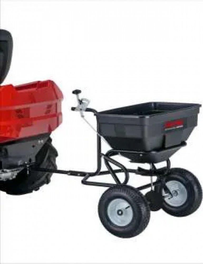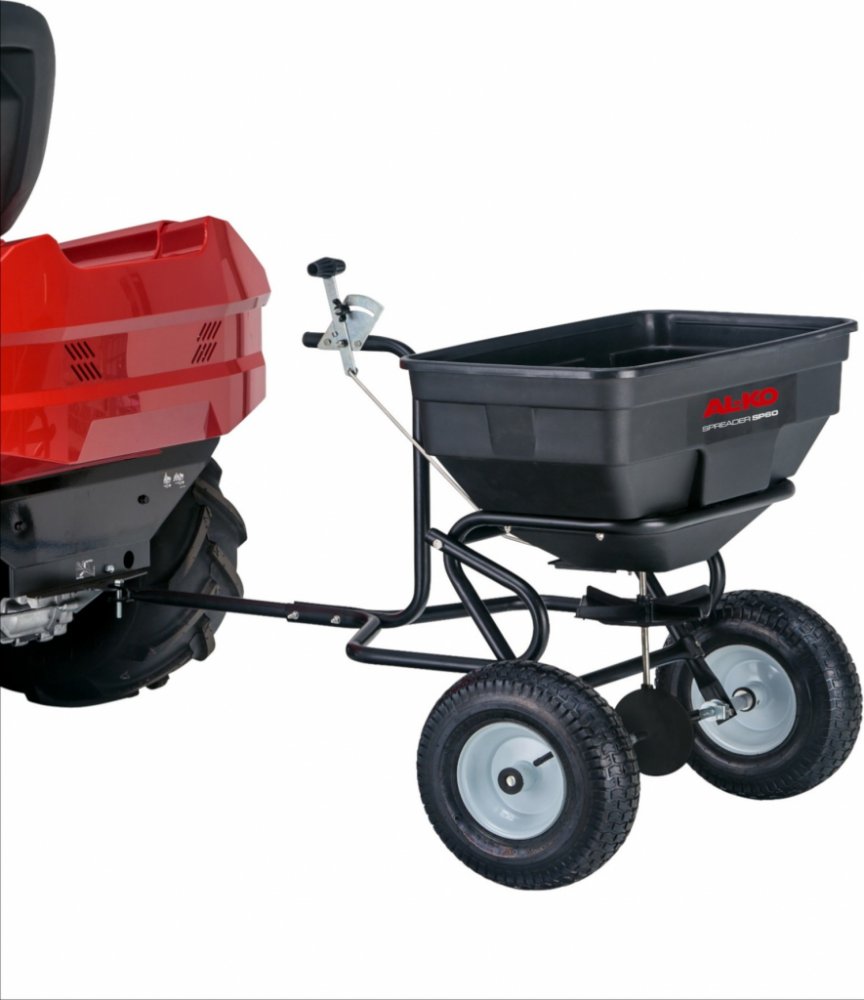 Všestranný zahradní pomocník. Široké pneumatiky zajišťují dobré jízdní vlastnosti i na nerovném povrchu. Max. Rychlost 5 km / h. Rozmetané množství lze přesně nastavit pomocí dávkovací páky. Lze použít po celý rok - v létě i v zimě. Vhodný také pro větší plochy. Používejte pouze ve spojení s přívěsem (není součástí dodávky).