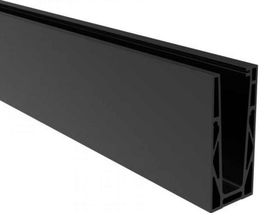 Hliníkový kotvící profil ELOX 121/45 mm pro sklo. Kotvení z vrchu do podlahy. Dodávány v délkách 2500 mm (13ks otvorů d13 mm pro kotvení). Dodávané bez těsnění. Povrchová úprava BLACK ELOX - brus. Al kotvící profil - kotvění vrchní