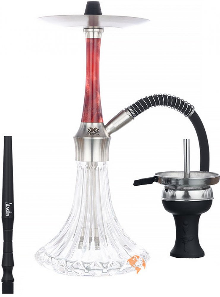 Vodní dýmka Aladin Epox je ultimátní dýmkou pro každého dýmařského hračičku - zpětný ventil je neuvěřitelně cool a lze ho přestavět na minimálně 9 různých způsobů vyfukování kouře z dýmky!!!! :-) Vodní dýmka Aladin Epox V1 je vodní dýmka z vrcholných řad proslulého výrobce Aladin. Vodní dýmka Aladin Epox je má kovové díly těla vyrobeny z kvalitní nerezové oceli stejně jako celonerezové vodní dýmky Aladin MVP. Dýmky řady Aladin Epox jsou navíc dodávány s designovým návlekem z epoxidové pryskyřice. Váza vodní dýmky Aladin Epox je robustní a velmi stabilní. Tělo je frézováné z poctivého těžkého kusu nerezové oceli, designově zkrášlené pryskyřicovým návlekem.Spoj těla vodní dýmka Aladin Epox s vázou je řešen závitem. Vodní dýmka je dodávaná se silikonovou hadici soft touch, která nechytá nečistoty z okolí jako konvenční silikonová hadice, navíc je příjemná na omak.Nerezovo/pryskyřicové vodní dýmky Aladin Epox jsou designově čisté a krásné, mají skvělý tah, snadno se rozeberou a čistí a jsou vhodné i pro velmi časté používání v provozech. Ke snadné manipulaci přispívá i konektor hadice na zábrus a též tácek nasazený na dýmku s vrchní částí těla na zábrus.Na spodní trubce vodní dýmky je velmi praktický regulovatelný difusor.Součástí vodní dýmky Aladin Epox je dále elegantní hliníkový náustek, pružina proti přehýbání hadice a šikovná hluboká keramická korunka včetně praktické badchy.Celková výška vodní dýmky: 43 cm (bez badchy)Výška vázy vodní dýmky: 18 cmVýška těla vodní dýmky: 18 cmPočet vývodů na hadici vodní dýmky: 1Počet hadic v základní sadě: 1 silikonová soft touch s alu náustkemDélka hadice vodní dýmky: 175 cmVodní dýmky Aladin Epox jsou dodávány s bohatým příslušenstvím. Co vše při objednání této vodní dýmky dostanete?1. Vodní dýmku (váza + tělo dýmky z nerezu + návlek z epoxidové pryskyřice)2. Silikonovou hadici soft touch s alu náustkem a pružinou3. Tácek na odkládání uhlíků4. Keramickou korunku a badchu5. Kleště na uhlíky6. Velmi podrobný návod na přípravu vodní dýmky7. Demontovatelný difusor s regulovatelným účinkem