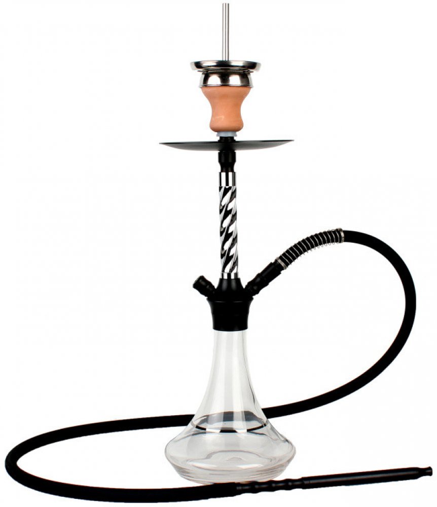 Eloxovaná vodní dýmka Aladin Alux M3 Silver 48 cm Clear s čirou vázou a tělem ve stříbrno černé barvě.
