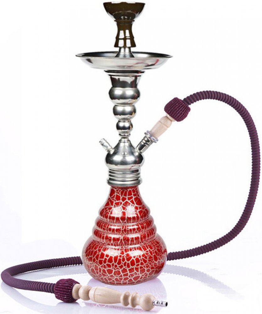 Elegantní malá vodní dýmka Aladin Origins Berlin 3 v červeném provedení. Moderní provedení vodní dýmky s designem popraskané vázy. (Korunka v černém provedení).