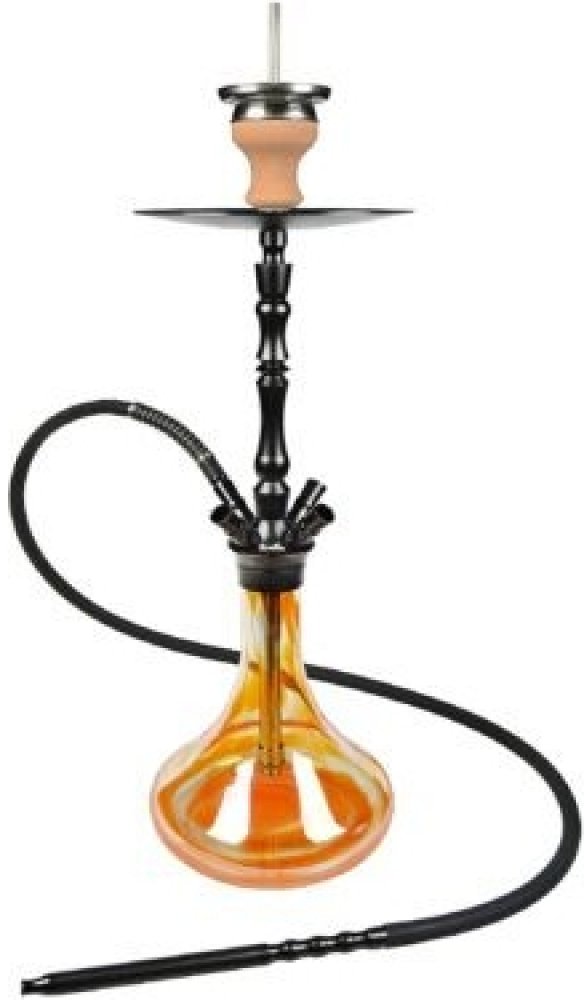 Moderní vodní dýmka Aladin Alux M4 Orange je vysoká 62 cm. Čtyřšlauchová vodní dýmka s tělem a doplňky v černém provedení a masivní oranžově tónovanou vázou s perleťovým efektem. Hliníkové dýmky si v posledních letech získávají stále větší oblibu. V porovnání s klasickými nerezovými dýmkami jsou nejen lehčí a levnější, ale povrch s eloxovanou vrstvou dodá dýmce exklusivní vzhled. Vodní dýmka Alux M4 populární značky Aladin má precizně zpracovaný povrch z eloxovaného hliníku a je dodávaná s jedním silikonovým šlauchem, který je ukončený trojdílným šroubovacím náustkem. Tělo dýmky je s vázou pevně spojeno rychlým systémem uchycení Click, díky kterému není nutné používat těsnění a dýmka se také snadněji složí a rozloží. Spodní trubka (Down Stem) je vybavený stavitelným difusorem, který pomůže zjemnit tah a ztiší bublání. Keramická korunka je vybavená praktickým nástavcem badcha pro snadnou přípravu dýmky. Badcha pro korunku vodní dýmky nahrazuje alobal a navíc výborně odvádí přebytečný horký vzduch z korunky. Komín uprostřed zajišťuje, že se tabák uvnitř korunky nepřepaluje. Vodní dýmku Aladin Alux M4 je možné dovybavit zachytávačem melasy, který zamezí kapání melasy z korunky do vody a tím jejímu znečištění. Současně je dalším designovým prvkem vodní dýmky, kterou tím ještě více ozvláštní. Zachytávač naplníme vodou tak, aby hladina byla pod skleněnou trubičkou uvnitř. Zapojíme mezi tělo dýmky a talířek. Tím je zachytávač připraven k použití.