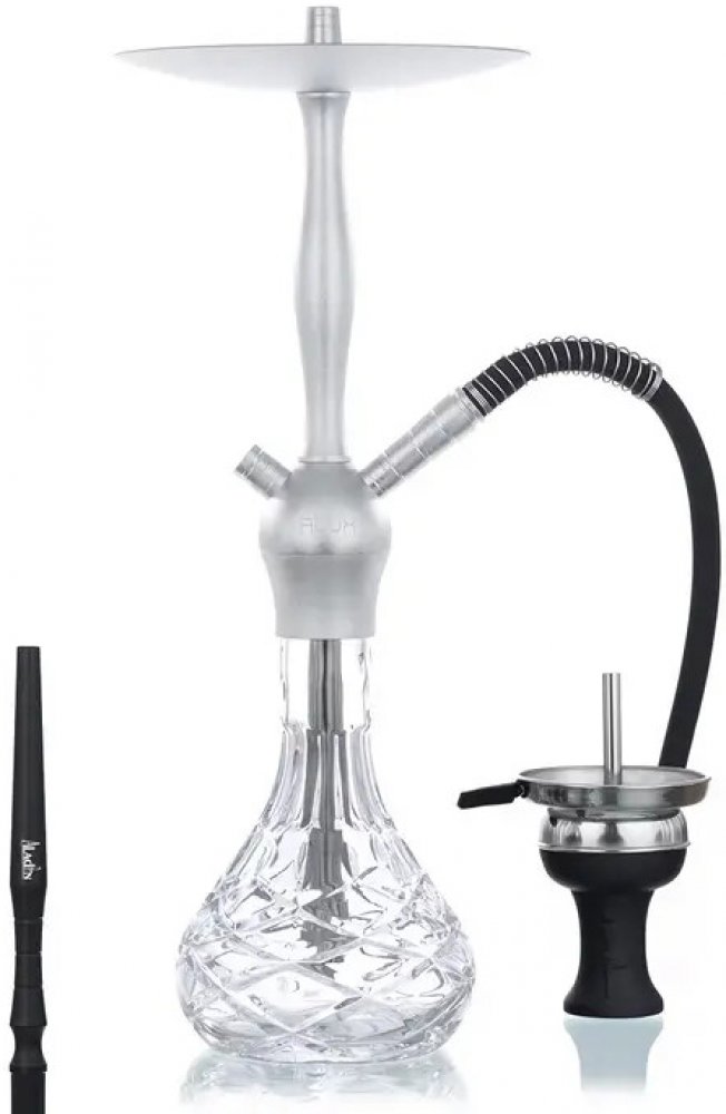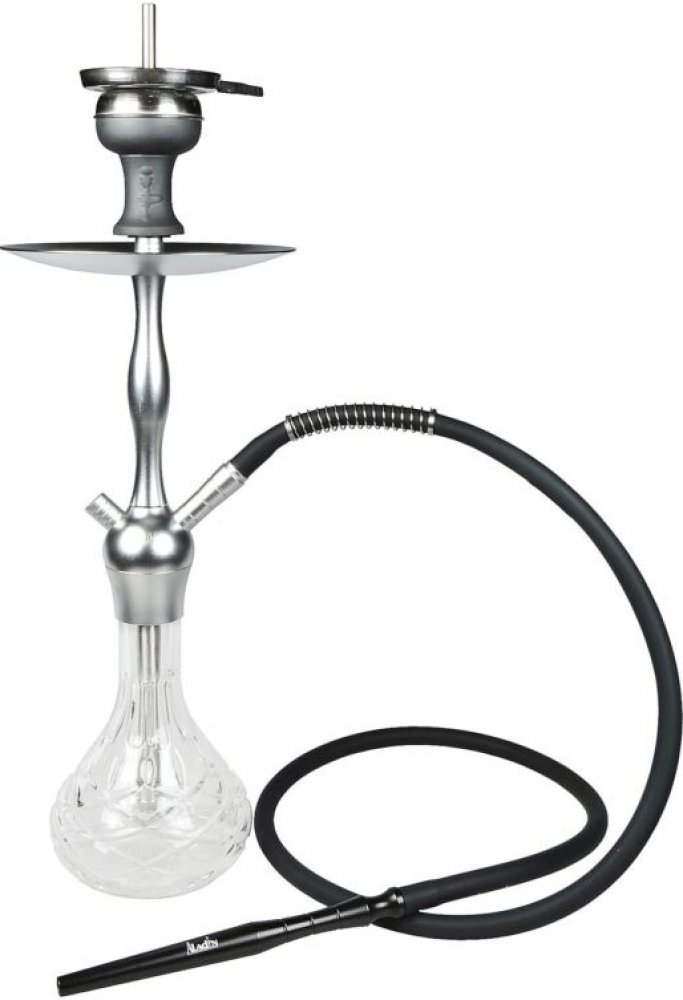 Moderní vodní dýmka Aladin Alux Admiral Silver je vysoká 50 cm. Atraktivní jednošlauchová vodní dýmka je v stříbrném provedení se skleněnou vázou zdobenou lisovanými ornamenty. Hliníkové dýmky si v posledních letech získávají stále větší oblibu. V porovnání s klasickými nerezovými dýmkami jsou nejen lehčí a levnější, ale povrch s eloxovanou vrstvou dodá dýmce exklusivní vzhled. Vodní dýmka Alux Admiral populární značky Aladin má precizně zpracovaný povrch z eloxovaného hliníku a je dodávaná s jedním silikonovým šlauchem, který je ukončený hliníkovým náustkem. Tělo dýmky je s vázou pevně spojeno rychlým systémem uchycení Click, díky kterému není nutné používat těsnění a dýmka se také snadněji složí a rozloží. Spodní trubka (Down Stem) je vybavený stavitelným difusorem, který pomůže zjemnit tah a ztiší bublání. Keramická korunka s kovovým sítkem je vybavená praktickým nástavcem badcha pro snadnou přípravu dýmky. Badcha pro korunku vodní dýmky nahrazuje alobal a navíc výborně odvádí přebytečný horký vzduch z korunky. Komín uprostřed zajišťuje, že se tabák uvnitř korunky nepřepaluje. V obsahu balení najdete: tělo dýmky, vázu, silikonovou hadici s hliníkovým náustkem a konektorem pro připojení, keramickou korunku se sítkem, nástavec badcha, potřebné těsnění, pružinu na hadici a kleště na uhlíky. Vodní dýmku Aladin dodáváme v kartonové krabici.