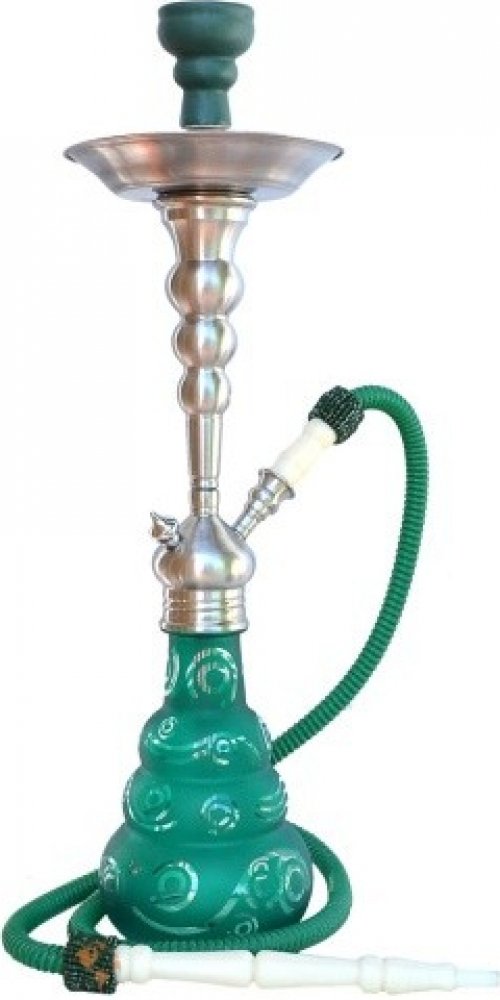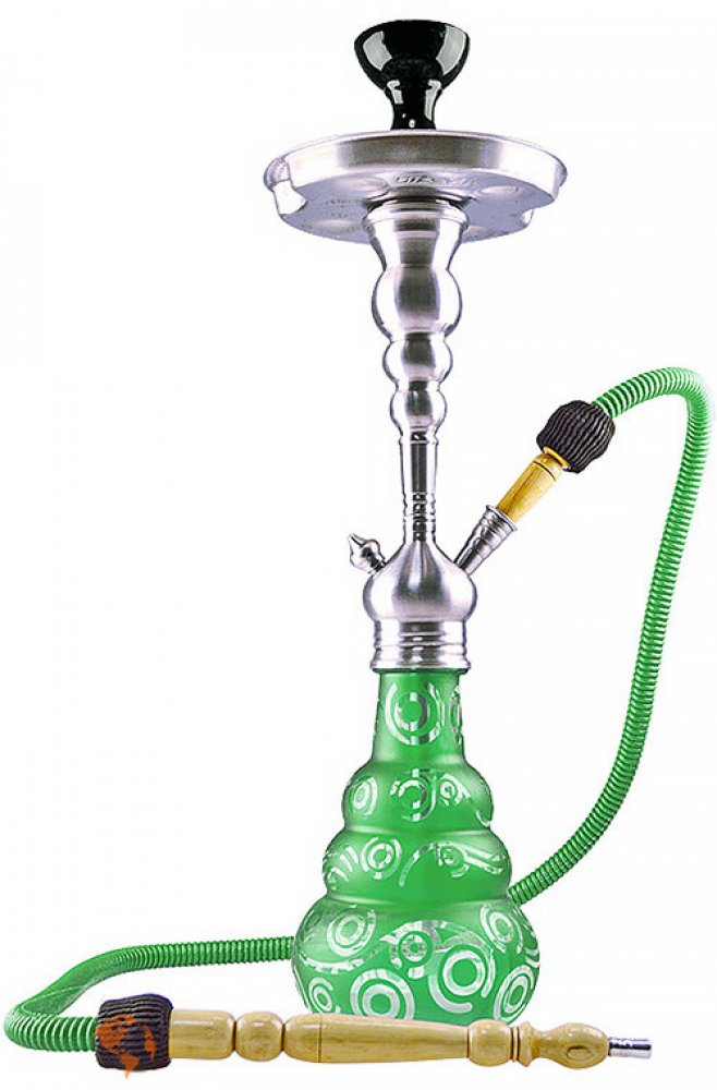 Tradiční střední vodní dýmka s nádherným matným tělem z kartáčované nerezové oceli a bohatě zdobenou skleněnou vázou. Vodní dýmka je součástí energické řady vynikajících vodních dýmek Aladin Origins.