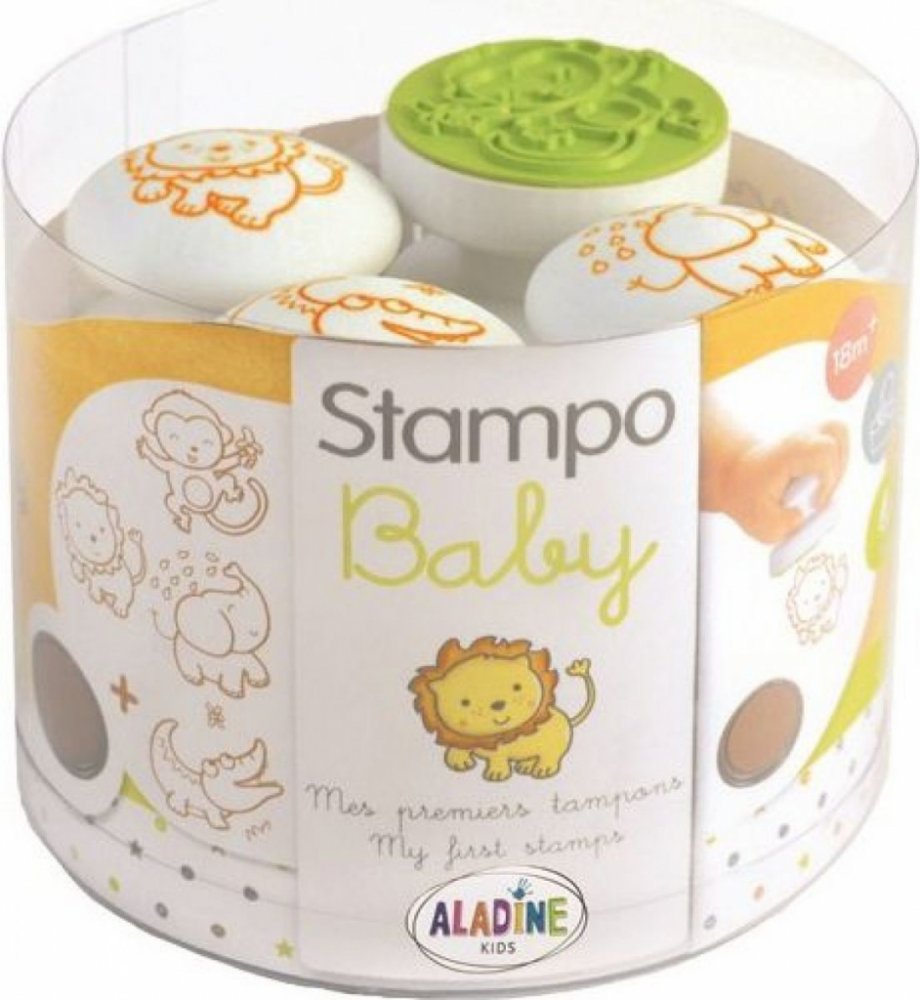 4 ergonomicky tvarované razítka s razítkovací poduškou. Velikost motivů: cca 4 cm. První výtvarná hračka, kterou snadno uchopí batole od cca 1 roku. Děti v tomto věku začínají říkat první slovíčka. Motivy razítek respektují tuto slovní zásobu a umožňují celou škálu společných interaktivních činností. Inkoust podušky je testovaný jako zdravotně nezávadný. Lze ho snadno umýt i vyprat. Po použití polštářek zavírejte a ukládejte víčkem dolů. Tak bude poduška vždy připravena k razítkování. Razítka po skončení práce můžete očistit vlhčenými ubrousky. Razítka pak můžete ještě umýt pod vlažnou vodou. Vhodné pro děti od 18 měsíců.