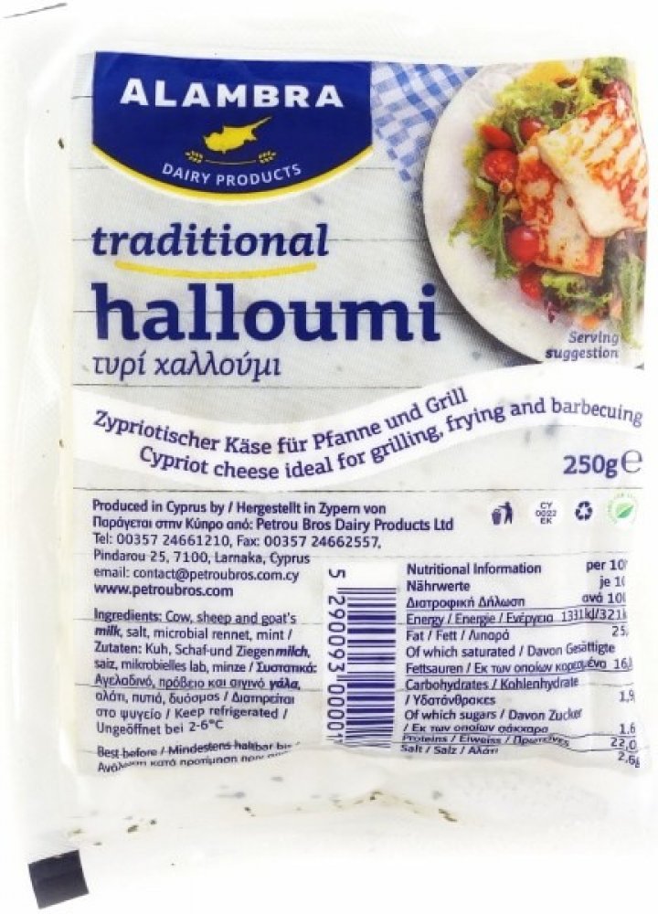 Sýr Halloumi je tradiční kyperský sýr, který se na ostrově vyrábí po staletí. Je to polotvrdý sýr a vyrábí se směsí kravského, ovčího a kozího mléka. Poté přidáme sušenou mátu a konzervujete ho ve slané vodě.