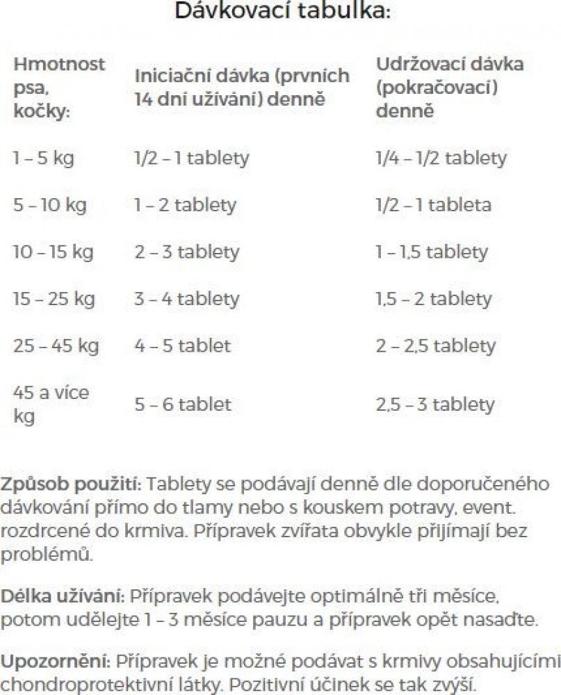 Tablety se podávají denně dle doporučeného dávkování přímo