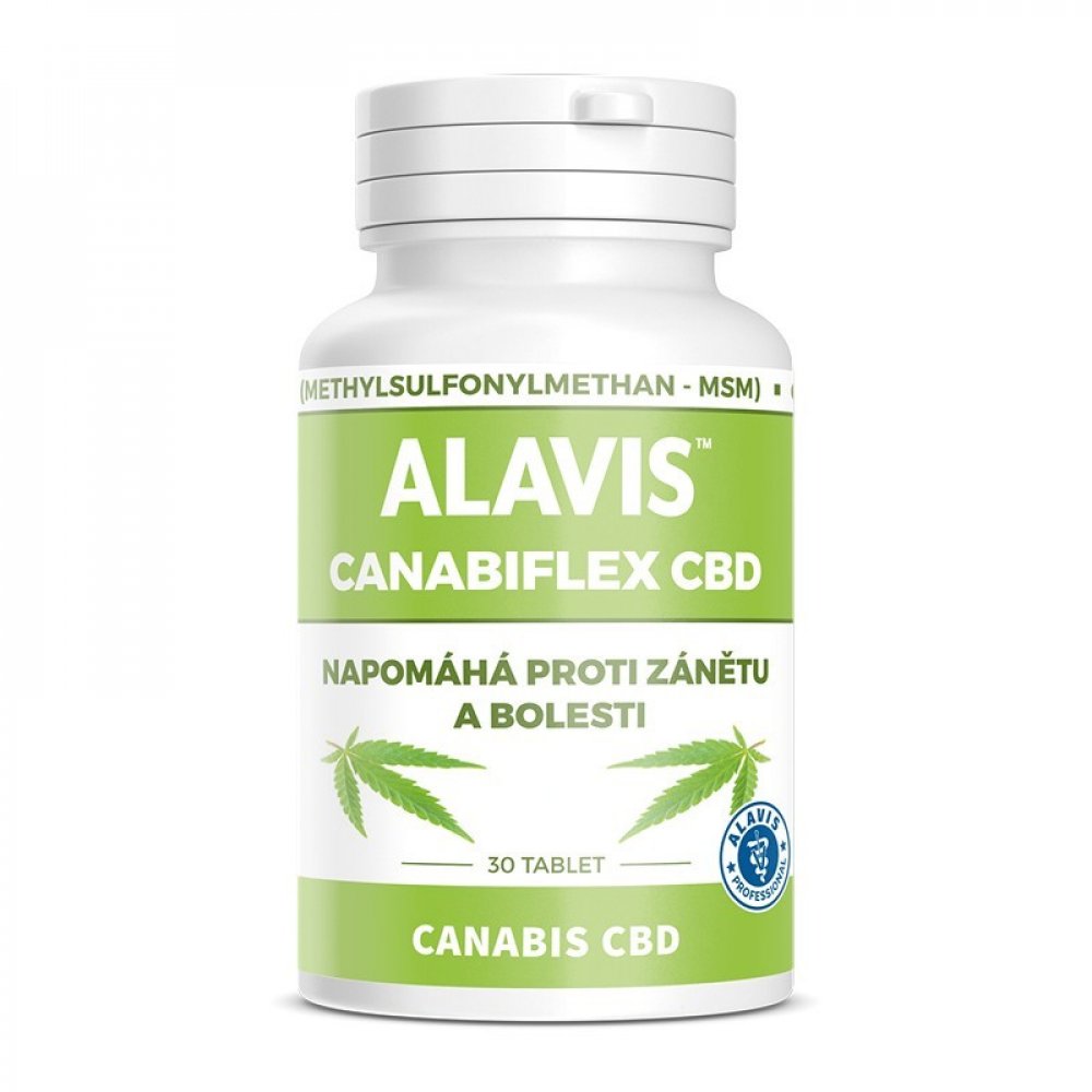 Alavis™ CanabiFlex CBD je veterinární přípravek, který obsahuje látku MSM- methylsulfonylmethan, to je organicky vázaná síra a dále je přípravek obohacen o kanabidiol, což je látka vyskytující se v konopí.