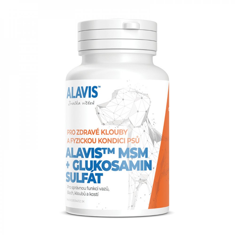 ALAVIS™ MSM + Glukosamin sulfát je osvědčenou kombinací látky MSM a Glukosamin sulfátu pro správnou funkci vazů, šlach, kloubů a kostí. Doporučuje se u štěňat a mladých psů pro správný vývoj pohybového aparátu a dále u psů každého věku při nemocech kloubů, kostí a svalových úponů a pro jejich prevenci. Jedinečná kompozice tohoto přípravku vykazuje výrazný účinek proti bolesti a zánětu. Protizánětlivý účinek látky MSM je výrazně podpořen olejem z brutnáku lékařského, boswelií, kurkumou a zázvorem.