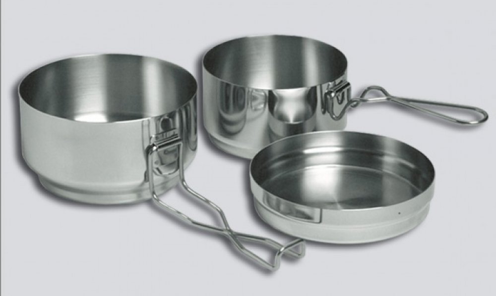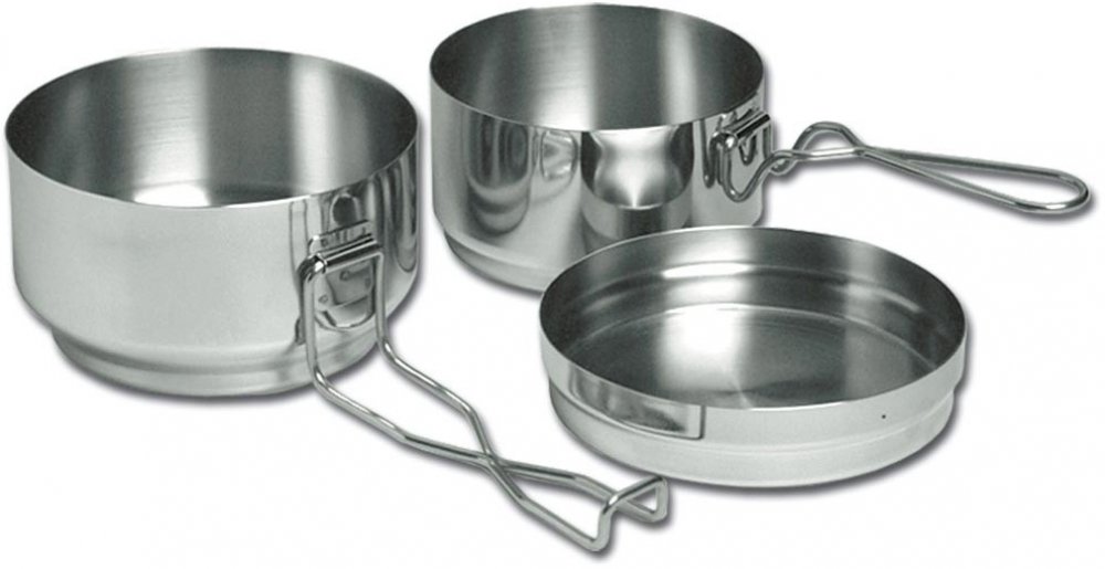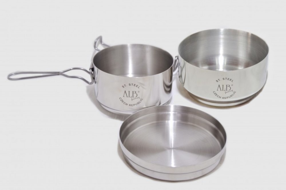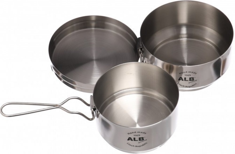 Klasický třídílný ešus od české firmy Alb v nerezovém provedení je dobrá volba pro vaše kempingové nádobí. Nádobí je určeno pro přípravu pokrmů za tepla i za studena. Nerezová varianta klasického „armádního“ ešusu. Nádobí se skládá ze tří dílů velká miska má objem 1,25l, malá miska 850 ml a víčko 300 ml. Snadná údržba i samotné jezení díky rádiusu u dna víka a misky. Do nádobí pohodlně umístíte pl...
