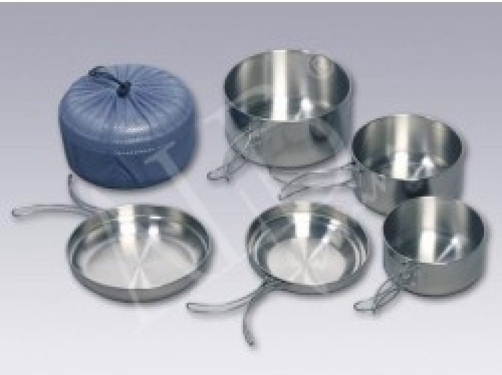 Nerezové nádobí největšího objemu, kombinuje vše ze sad „MAKALU“ a „K2“. Výrobek určený zejména pro rodiny s dětmi. Vyrobeno z kvalitního nerezu CrNi 18/10 s povrchem vně leštěným, uvnitř broušeným. Pánev i misky mají lemovku a sklopné držáky.