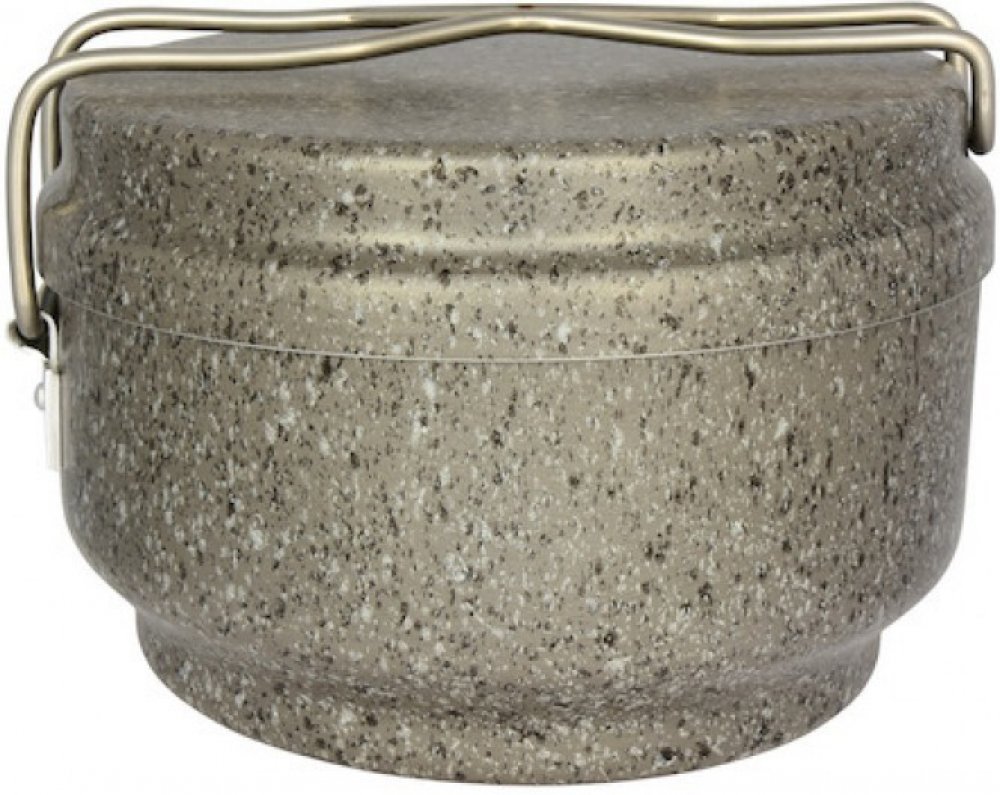 Hliníková varianta klasického ešusu. Sada nádobí se skládá ze dvou dílů (miska + víčko) se sklopným držákem. Ešus je vyroben z potravinářského hliníku s mořeným povrchem, což zaručuje zdravotní nezávadnost. Varianta ešusů Stone má tenkou vrstvu teflonu a kamenný design. Díky teflonu je snadná údržba i vaření bez připalování.