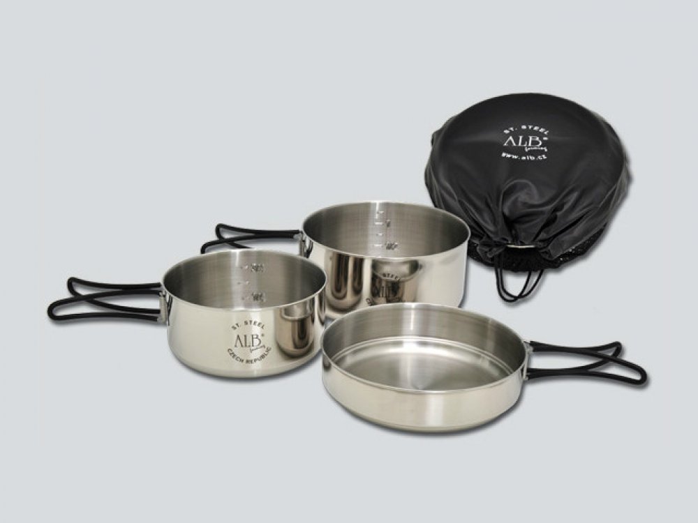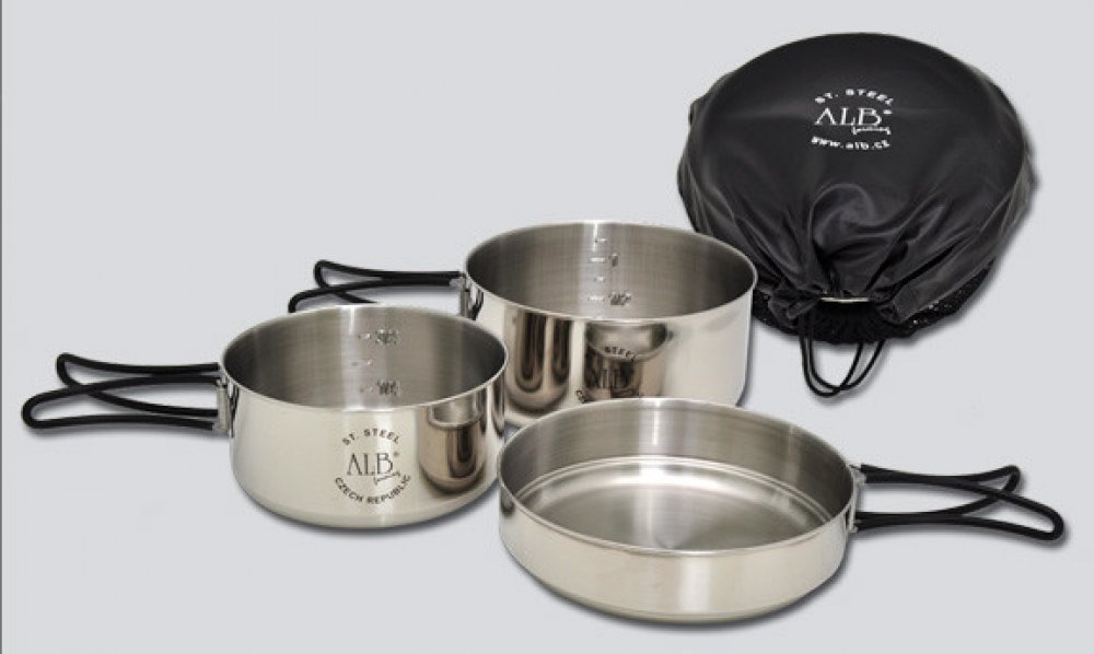 Sada je vybavena hliníkovými kleštěmi pro snadnou manipulaci s jednotlivými nádobami (např. při ohřevu)