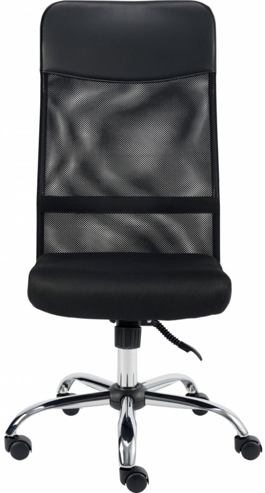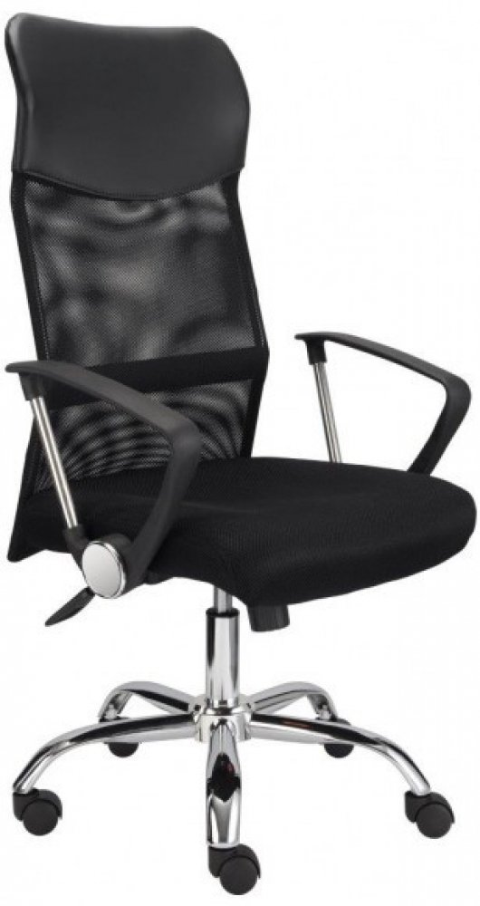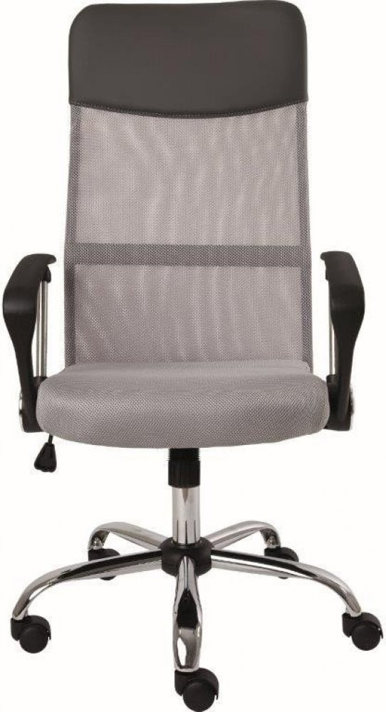 Židle je smontovaná ze showroomu. Nová, bez žádných vad a nedostatků. Bez originál obalu. Velmi oblíbené jednoduché kancelářské křeslo s područkami a houpacím mechanismem pro domácí použití či pro studenty. Vysoký síťovaný opěrák s podhlavníkem je v horní části potaženým černou koženkou, sedák je opatřen prodyšnou šedou látkou, kříž chromový. Židle má výškově stavitelné područky s PU topem. Kancel...