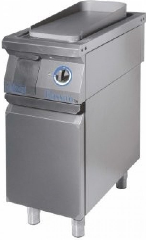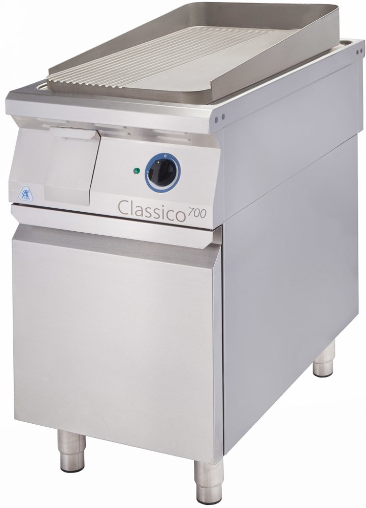 Topná zóna regulovatelná. Žlábek s otvorem pro odtok tuků do výsuvné velkoobjemové nádoby uprostřed předního krytu. Velkoobjemová odpadní nádoba - 2,6 litru. Síla grilovací desky - 12 mm. Podstavce v několika variantách, vždy opatřeny všemi seřizovatelnými nožičkami. Celonerezová konstrukce z kv...