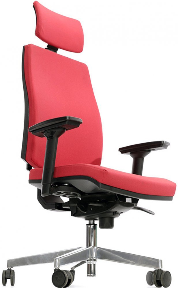 V základní ceně je tato židle bez područek a podhlavníku, s nylonovým černým křížem a s mechanikou Synchro.