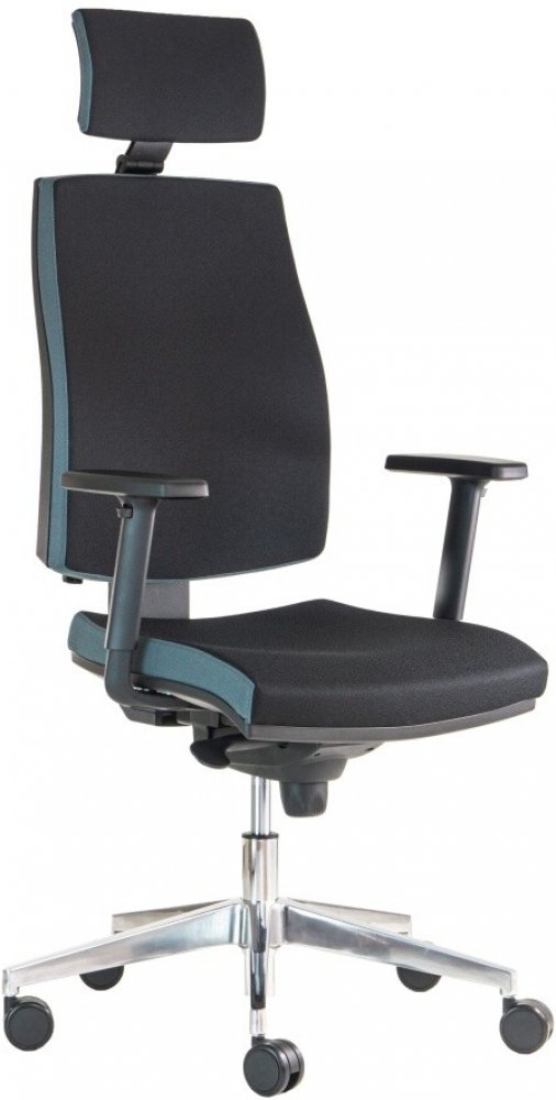 "Kancelářská židle JOB s 3D podhlavníkem a područkami na leštěném hliníkovém kříži nabízí špičkovou ergonomii pro každodenní pracovní výkon. Díky synchronní mechanice s 5 polohami aretace a vstřikované polyuretanové pěně poskytuje stabilní oporu bez prosezení i po letech používání. Nastavitelné područky a 3D podhlavník umožňují optimální přizpůsobení, což zlepšuje držení těla a snižuje únavu. Židle je certifikována dle ČSN EN 1335, nabízí nosnost 130 kg a je vybavena kvalitními kolečky, což zajišťuje stabilitu a snadný pojezd, ať už v kanceláři nebo doma."
