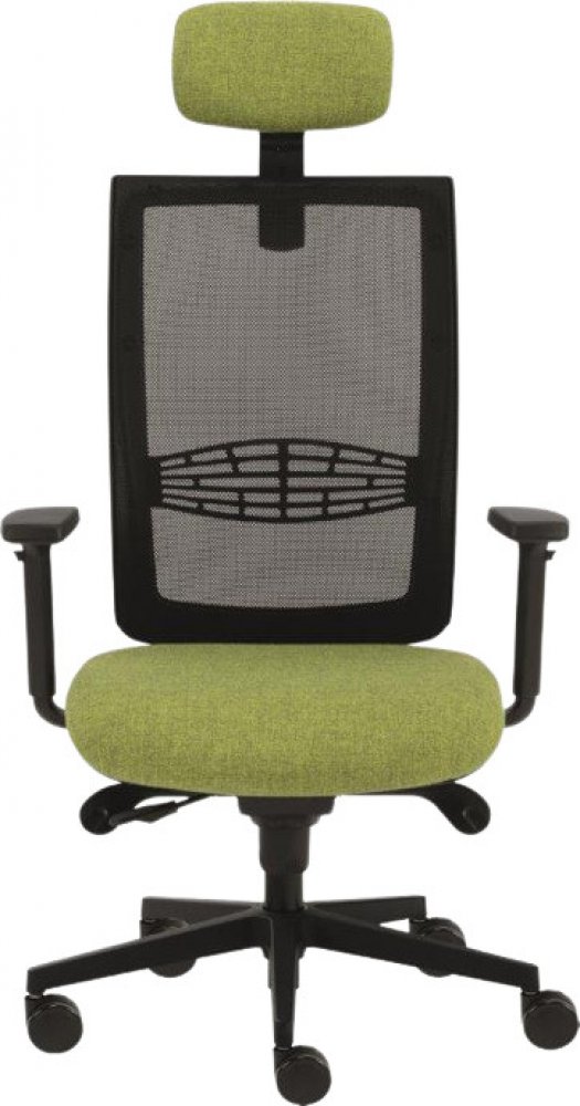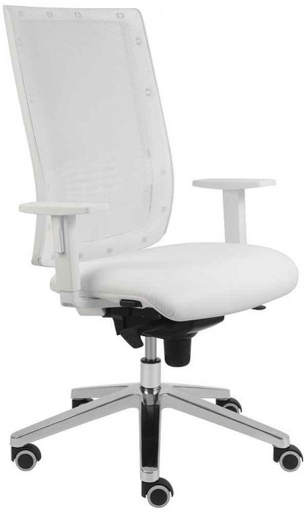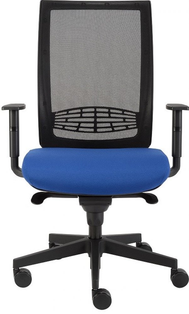 Velmi elegantní židle s vysokou nosností. Mechanika T-synchronní s posuvem sedáku. Fixní síťovaný opěrák s výškově nastavitelnou bederní opěrkou. Křeslo je vybaveno nylonovým křížem s kolečky určenými na koberec. Bez područek a opěrky hlavy.