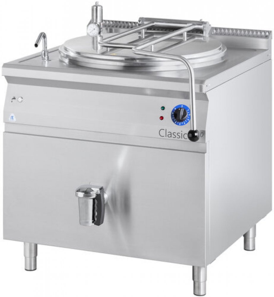 Kotle jsou vyráběny z nerezavějící oceli 18/10. Dno a stěny kotle z nerezové oceli AISI 316 (EN14401) se zvýšenou odolností proti soli a chemikáliím. Skládající se z horní části a podstavce. Horní část tvoří deska s varnou nádobou, pojistnou armaturou, napouštěcí trubkou a poklicí varné nádoby. Varná nádoba je opatřena duplikátorem osazeným topnými tělesy. Obsah varné nádoby je ohříván parou, kter...