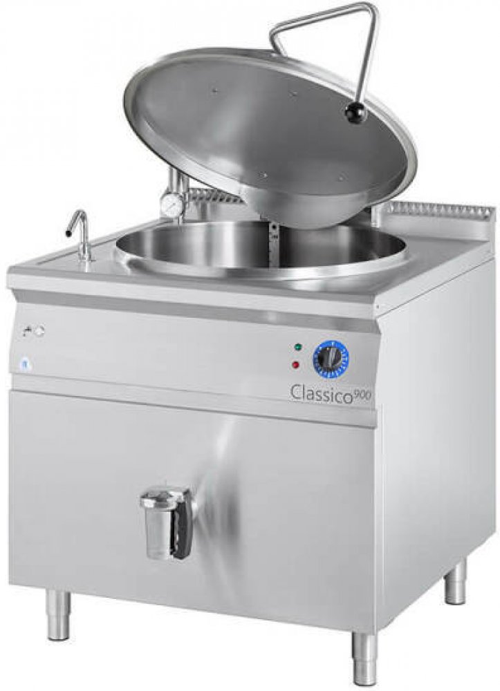 Kotel s nepřímým ohřevem, celonerezová konstrukce, vnitřní stěny a dno duplikátoru z nerezové oceli odolné solím a chemikáliím AISI 316L, pracovní deska a opláštění z nerezové oceli AISI 304 L, mokrá zóna s odvodem vody na pracovní desce, automatické dopouštění duplikátoru bez zásahu obsluhy se spektrometrickým čidlem odolným vodnímu kameni, zcela plynulá regulace výkonu, mosazný bezúdržbový kónic...