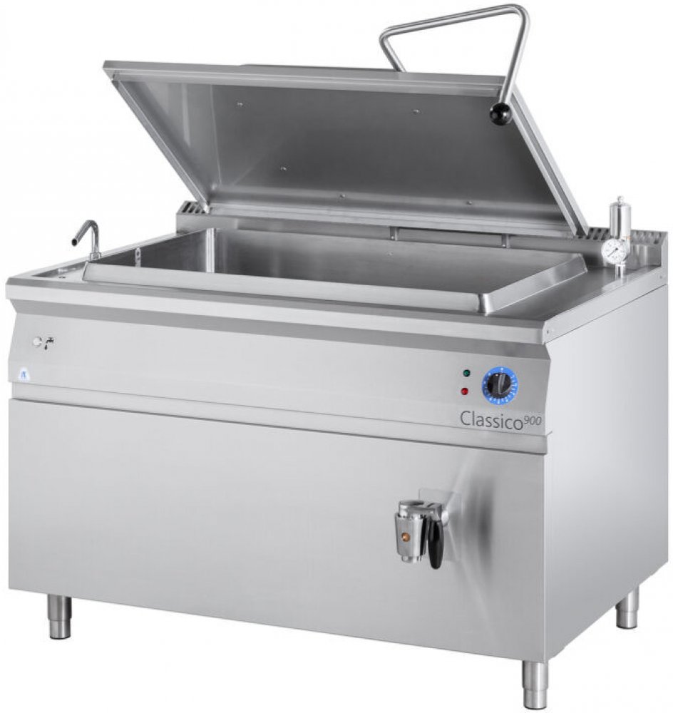 Plynový kotel ALBA 280 litrů GB 280/900 - s mokrou zónou pracovní desky, která zvyšuje bezpečnost práce a hygienu provozu. Vybaven vypouštěcím ventilem 45 cm nad zemí se snadnou manipulací s nádobou a pokrmem. Využitelný objem kotle: 250 l s přesnou měrkou objemu na stěně kotle/celkový objem 280 l.