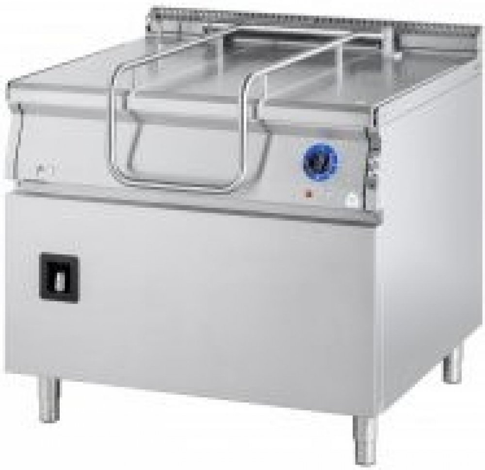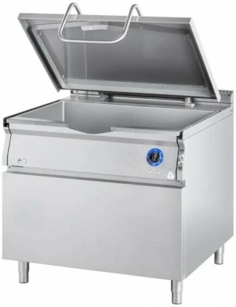 Elektrická sklopná pánev, motorické sklápění varné nádoby, celonerezová nádoba, víko bez otvorů s parozábranou, pracovní deska a ovládací panel z nerezové oceli AISI 304L, tlačítkem ovládané napouštění studené vody, nastavení teploty 50-300°C, nádoba s oblými kouty pro snadné čištění, masivní nerezové 12 mm dno nádoby, odvedení přeteklé vody do odpadu, krytí IPX4, seřizovat...