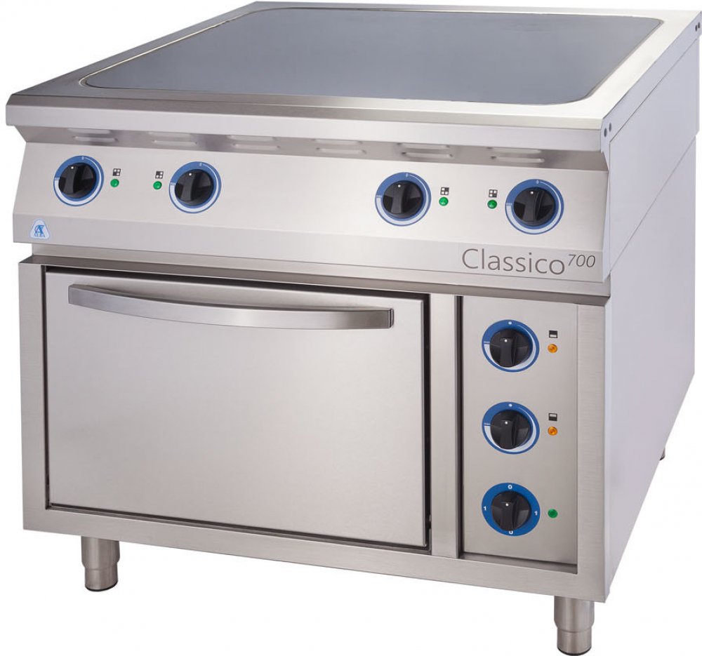 Celonerezová konstrukce z kvalitní potravinářské oceli AISI 304 - EN 1.4301. Síla sklokeramické desky - 6 mm. Plynulá regulace teploty topných těles. Ochrana proti přehřátí. Kontrolka zbytkového tepla každé varné zóny. 2 vsuvy uvnitř trouby. Samostatná vařidlová část a podstavce v několika variantách jsou opatřeny seřizovatelnými nožičkami.
