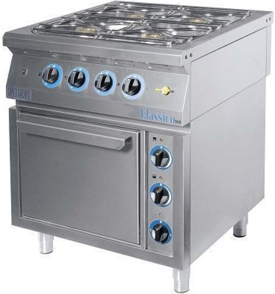 Vyjímatelná nerezová vana pod hořáky s odvodem přeteklých pokrmů do výsuvné nádoby. Celonerezová konstrukce z kvalitní potravinářské oceli AISI 304 - EN 1.4301. Hořáky vybaveny zapalovací elektrodou, zapalovacím hořáčkem a termoelektrickou pojistkou. Hlavní uzávěr plynu na čele sporáku umožňuje rychlé a bezpečné vypnutí a instalaci na stavební sokl. Podstavce v několika variantách jsou opatřeny seřizovatelnými nožičkami 2 vsuvy uvnitř trouby.