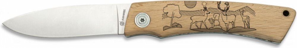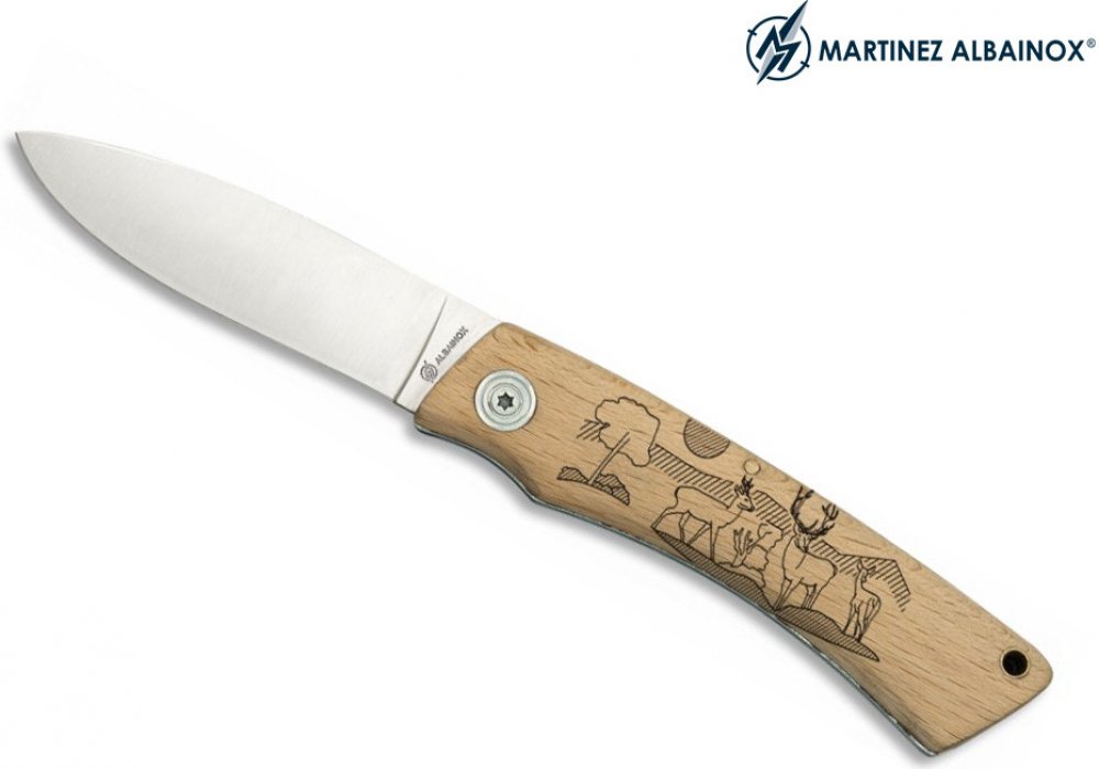 Kvalitní zavírací kapesní nůž s dřevěnou rukojetí od španělského výrobce Martinez Albainox. Rukojeť je dřevěná s motivem jelena. Čepel vyrobená z velmi kvalitní nerezové oceli. Skvěle se hodí do lesa, nebo jako pomocník při běžných činnostech.