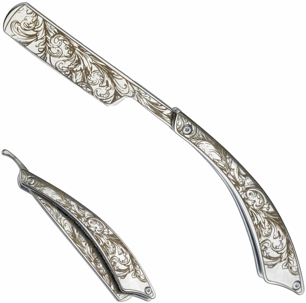 Naprosto úžasná zdobná břitva, která je zcela vyrobena z nerezové oceli 3Cr13Mov. Tato břitva je velice ostrá a připravena na holení. Její čepel má šířku 4,5 mm a délku 10,5 cm. Díky tomu můžete očekávat precizní a pohodlné holení. Rukojeť této břitvy měří 14,2 cm, což zajišťuje pevný a stabilní úchop.