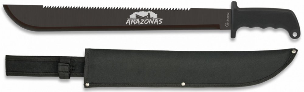 - mačeta od španělské značky ALBAINOX,- černěná čepel z nerezové oceli 3Cr13MoV s pilkou na zádech,- pogumovaná rukojeť,- délka čepele 46cm,- tloušťka čepele 1,7mm,- otvor pro provlečení pojistné šňůry v zadní části rukojeti,- dodáváno s nylonovým pouzdrem. POUŽITÍ: - do přírody, na chatu, - camping, survival.