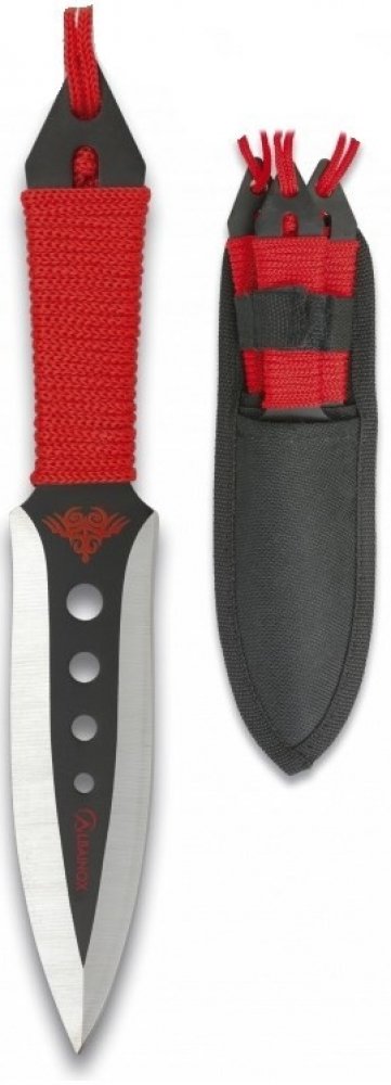 Albainox nože vrhací set s červeným paracordem 3 ks