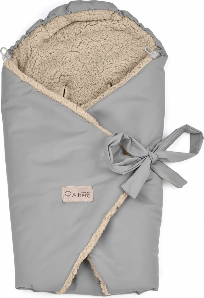 Zavinovačka / deka do autosedačky typu "vajíčko (0-13kg) značky Albero Mio z kolekce Teddy - design ŠEDÁ (T3). Pro chladnější období jaro/podzim/zima. Univerzální pro 3 i 5 bodové bezpečnostní pásy. Všitá gumička v kapuci - možnost regulace. Zavazovací na mašli. Vnější strana z nepromokavé tkaniny, vnitřní strana ze silnějšího, hřejivého beránkového plyše.