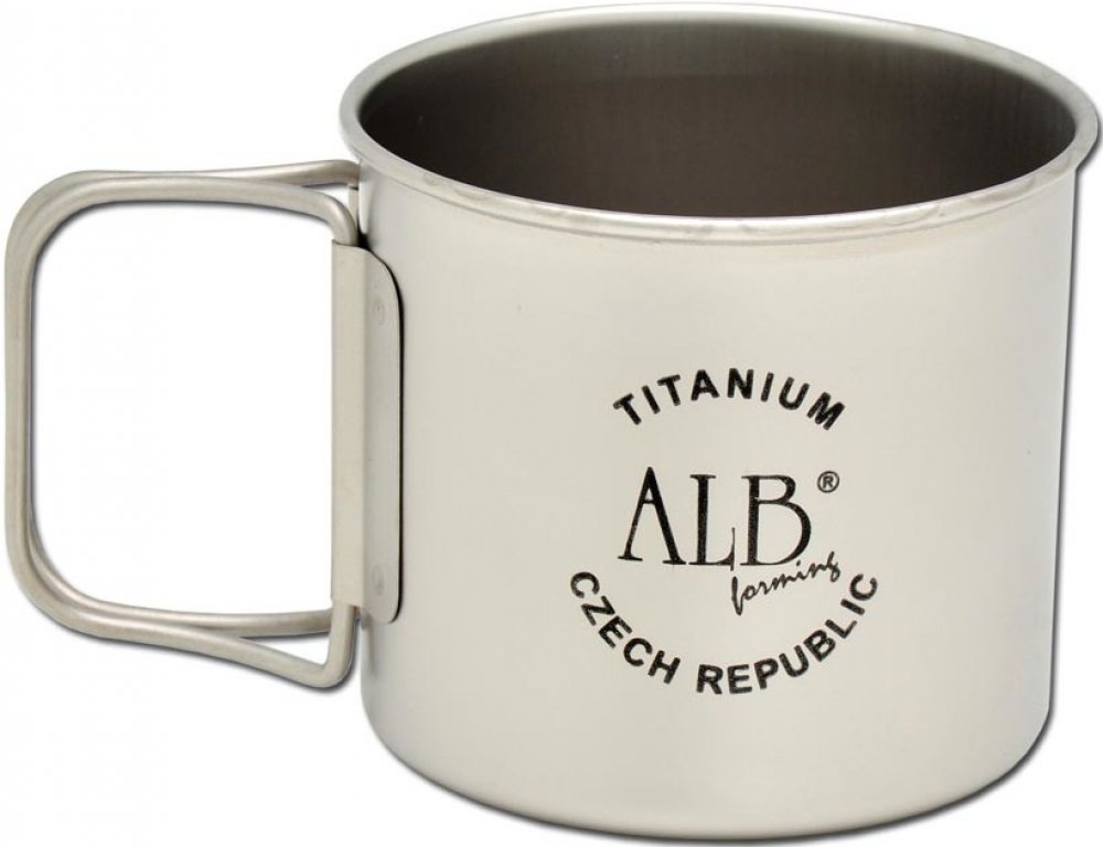 Ultralehký hrnek ALB Forming Titan 0,5 l vyrobený z vysoce kvalitního a odolného titanu. Horní okraj je zpevněn okrajem. Má skládací pogumované rukojeti pro snadnější manipulaci. Odolný, lehký a kompaktní doplněk do přírody. * nízká hmotnost* použití kvalitního titanového materiálu* pogumované skládací rukojeti Parametry:* hmotnost: 83 g* objem: 0,5 l* rozměry: 89 x 82 mm Materiál: titan, guma Objem: 400 ml Lehký titanový hrnek VAR, díky své hmotnosti vhodný kamkoli na cesty. Skládací ouško pro jednodušší transport. lehký titanový hrneksklopná ouškazákladní doplněk na kemping, čundr, trek apod.objem 0,5lváha 80 gsíla plechu 0,3 mm