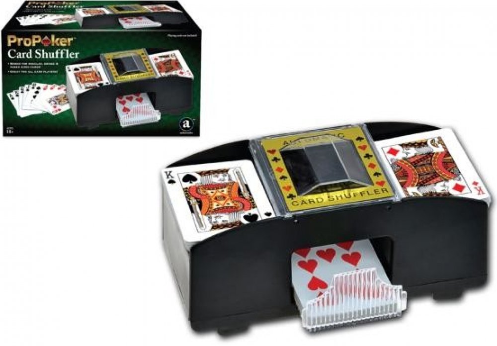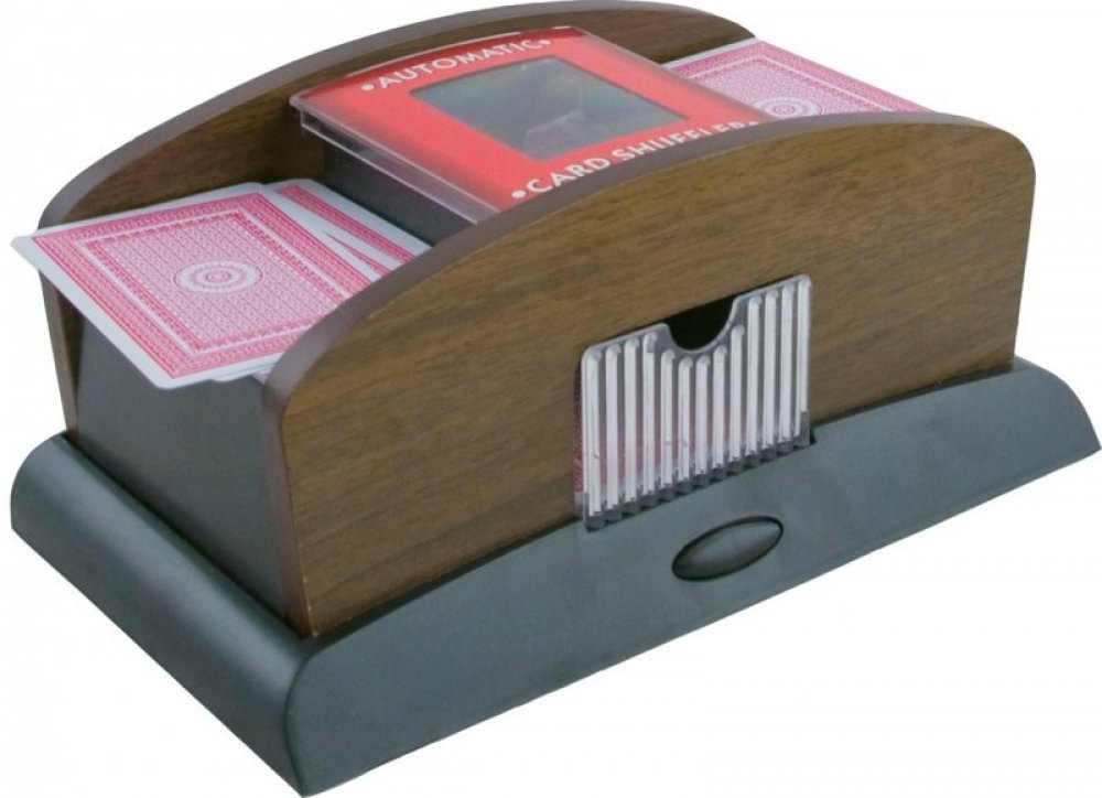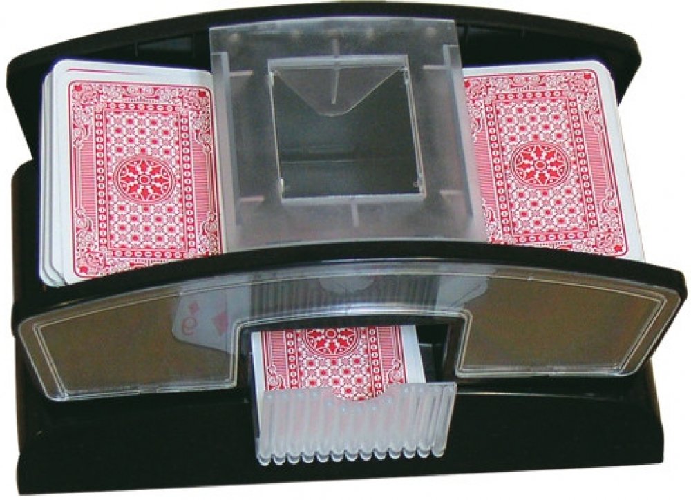 Tento automatický míchač karet dokáže zamíchat karty až dvou balíčků v několika sekundách.